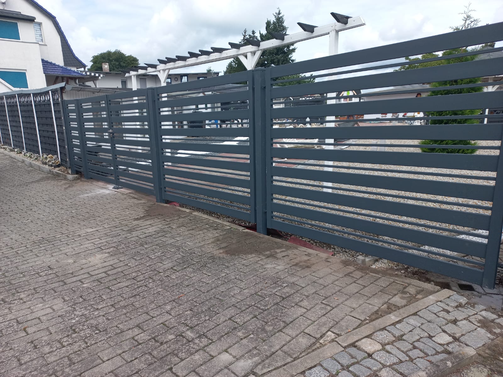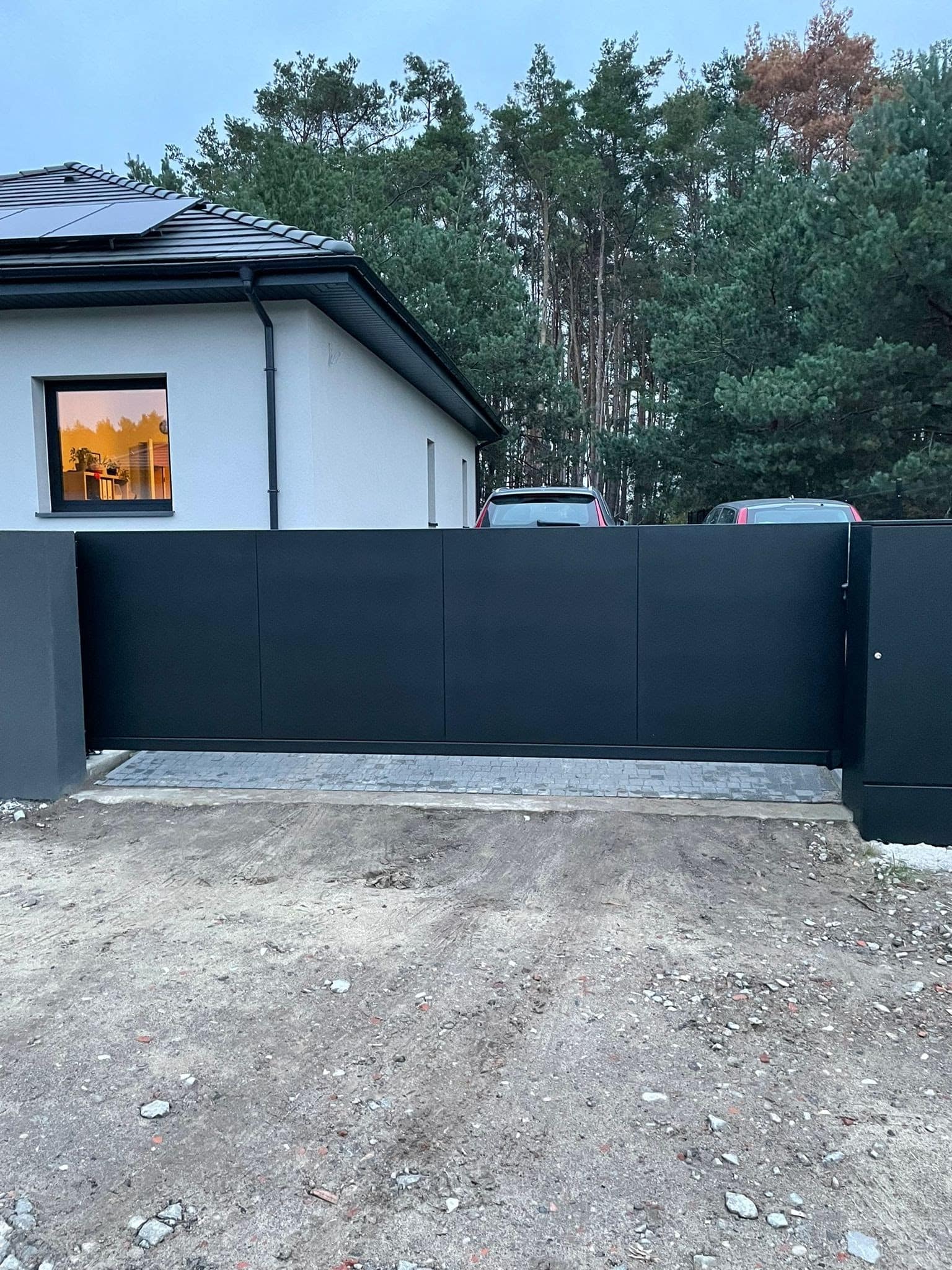 - Schiebetore – erhältlich in zwei Varianten: freitragend, die keine zusätzliche Unterstützung benötigen und ideal für diejenigen sind, die Sauberkeit und Minimalismus rund um das Tor schätzen, sowie Schienentore, die eine ausgezeichnete Lösung für Grundstücke darstellen, die eine solide und langlebige Konstruktion erfordern.