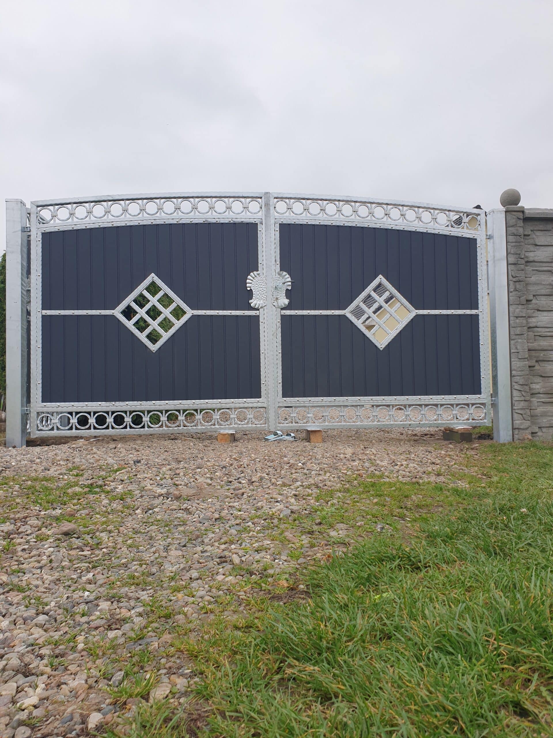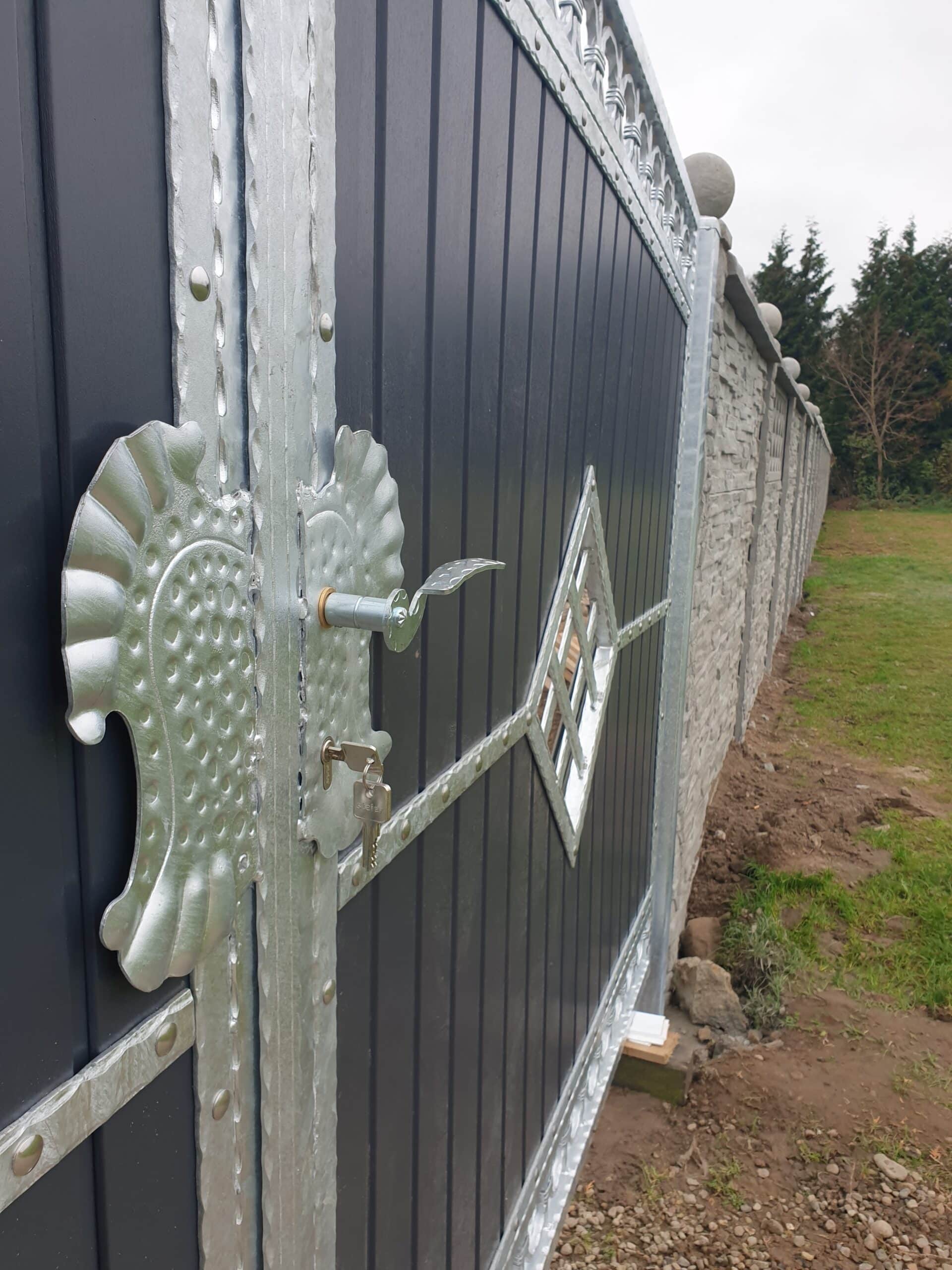 - Zweiflügeltore – klassisch und elegant, ideal für diejenigen, die traditionelle Lösungen bevorzugen. Sie sind außerordentlich funktional und einfach zu bedienen, und ihre Konstruktion ermöglicht eine breite Öffnung, was den Zugang zum Grundstück erleichtert.
